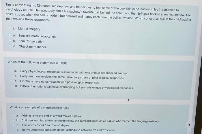 Solved Tim Is Babysitting His 12 Month Old Nephew And He Chegg Com